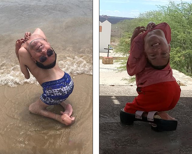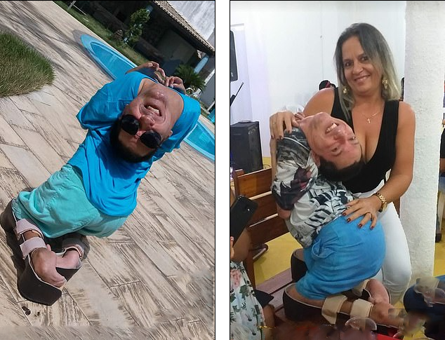 Claudio Vieira de Oliveira, 37, was born with a deformity that caused his neck to bend upside down, his legs were deformed, and his arms and arms could barely function at all. At the time, doctors believed he had almost no chance of survival. However, this man from Monte Santo, Brazil overcame all extreme difficulties to graduate in accounting and become a speaker.