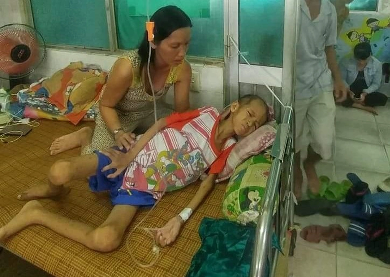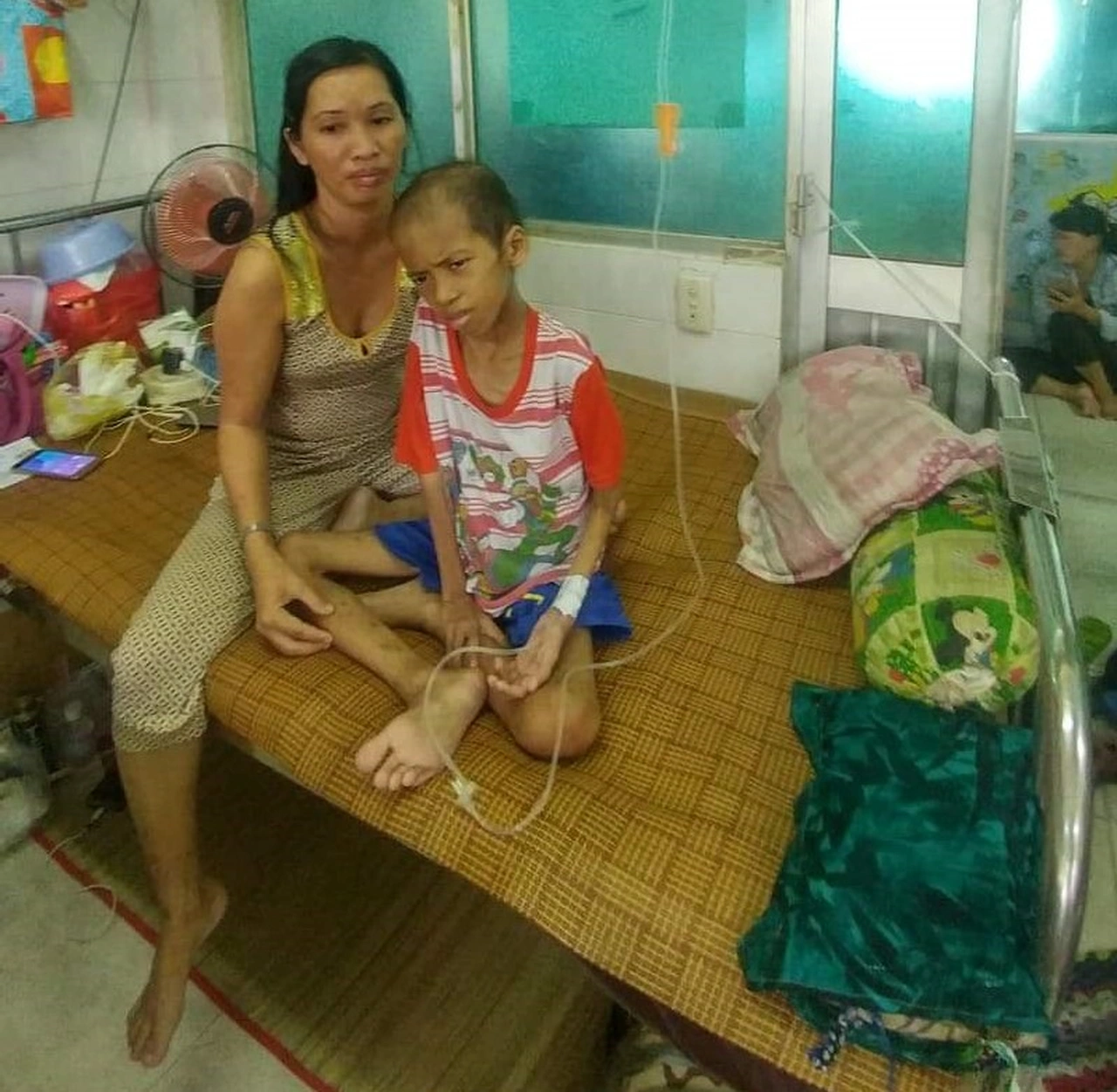 Visiting little Nhoi, everyone couldn’t help but feel sad to see the boy lying in a coma on the hospital bed, his whole body was thin, his limbs were like a stick, and his stomach was swollen like a drum…. My life is rushing every day to the point of heartache!