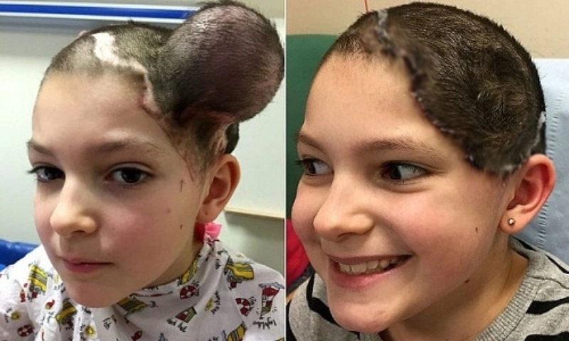 Born with a strange eczema covering half of her head, the 9-year-old underwent a complex surgery to reconstruct her scalp.