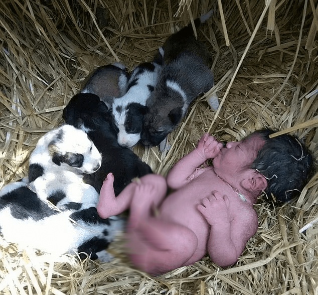 According to local residents, at 11 a.m., a group of people returning from work heard the cry of a newborn baby coming from the grass in the field. After searching, they found a naked boy like a pupae, with the umbilical cord intact, surrounded by a small pack of dogs.