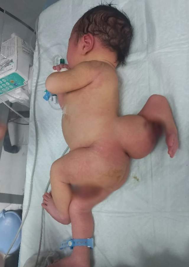 Out of caution, Aurelia was transferred to a higher-level medical facility equipped to handle complex neonatal cases. There, specialists determined that she has a rare condition known as a parasitic conjoined twin. This occurs when a partially developed twin remains physically attached and dependent on the healthy infant. In Aurelia’s case, the attached tissue is connected near the lower spinal region.