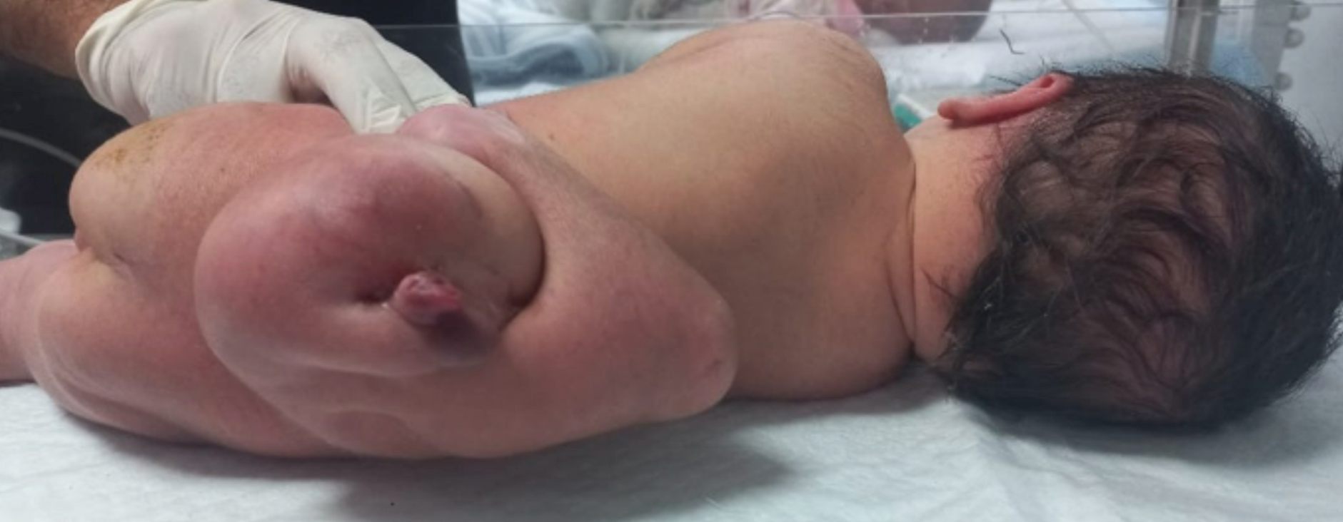 The baby, named Aurelia, was born at full term with assistance and appeared stable in her first moments of life. According to medical staff, routine prenatal examinations had shown no abnormalities during pregnancy. However, shortly after delivery, clinicians noticed an unusual mass located on her lower back, prompting further evaluation.