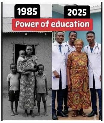This image is a reminder of how education is one of the most powerful tools we have in our fight against systemic inequality. For those who have the chance to receive it, education opens doors that would otherwise remain closed. It gives individuals the ability to rewrite their own narratives, to overcome challenges, and to build better futures. Whether it is a small town in 1985 or a successful medical career in 2025, the key to these transformations is knowledge — the kind of knowledge that enables people to break free from limiting circumstances and create lasting change in their lives and communities.