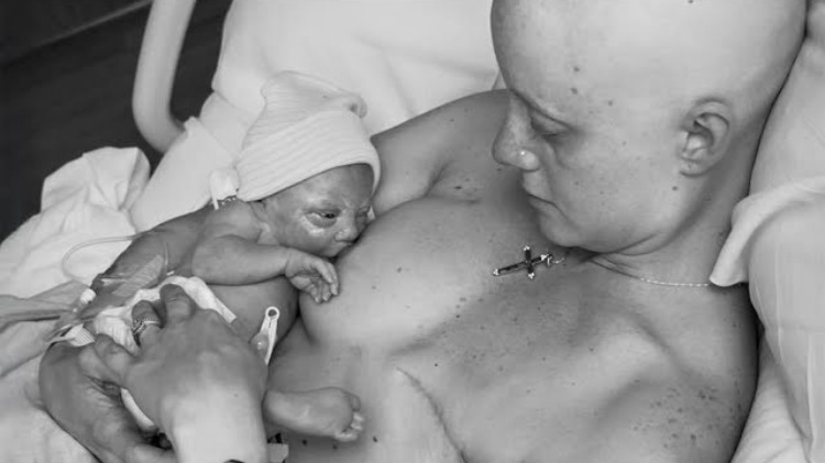 Before giving birth she was forced to undergo a mastectomy and her first round of chemotherapy.