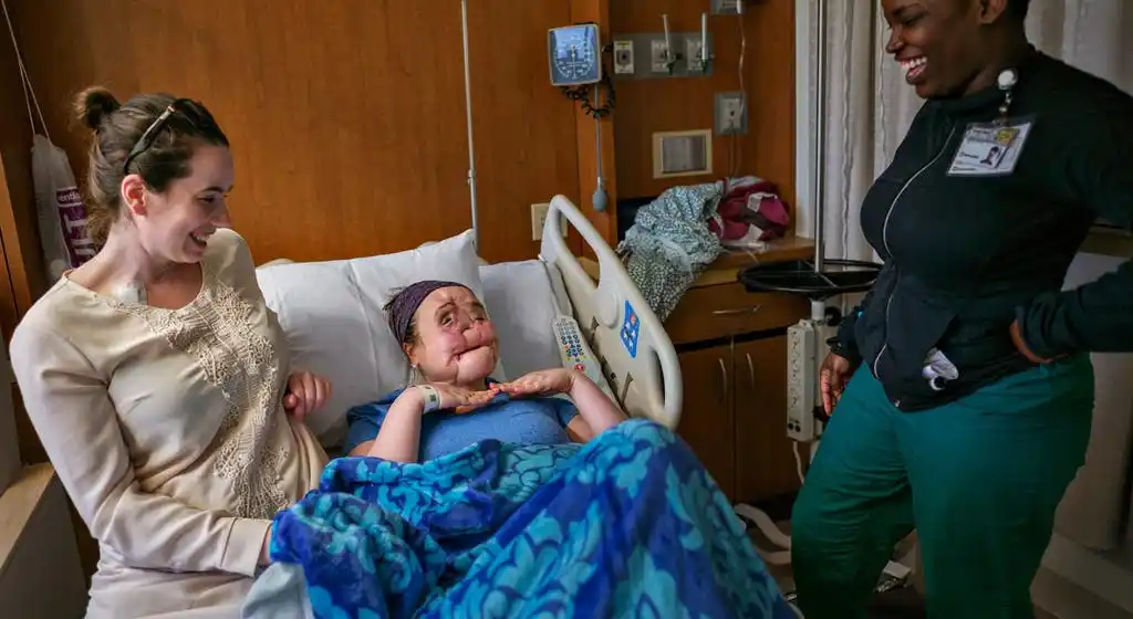 Katie’s story began years earlier, when at 18 she survived a catastrophic injury that left her with devastating facial damage. The trauma required immediate, life-saving intervention and marked the beginning of a long and uncertain medical journey. For years, she underwent extensive treatment and evaluation while doctors carefully assessed whether she would qualify for one of the most complex transplant procedures ever attempted.