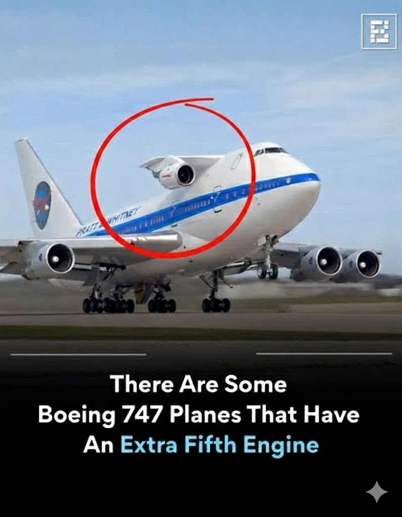A small number of Boeing 747 aircraft around the world carry one of the most unusual configurations ever seen on a commercial airframe: a fifth jet engine mounted on a short stub wing beneath the fuselage.