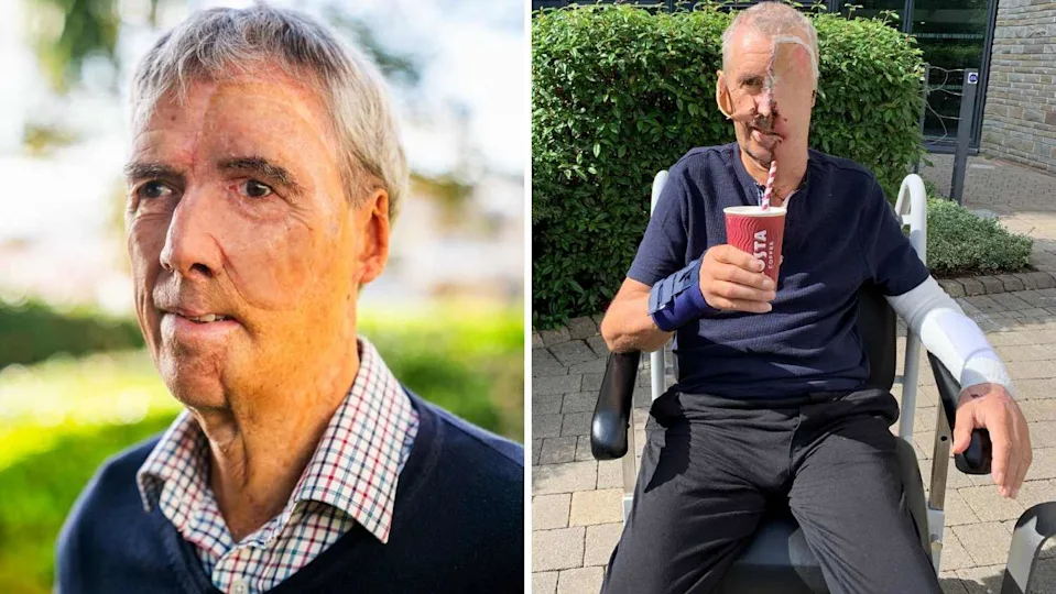 Dave Richards, 75, was given a 3D prosthetic by the NHS that fits the space on his face and mimics his hair colour, eye colour and skin. His face received full-thickness burns after a speeding drunk driver hit him while he was out cycling with friends.