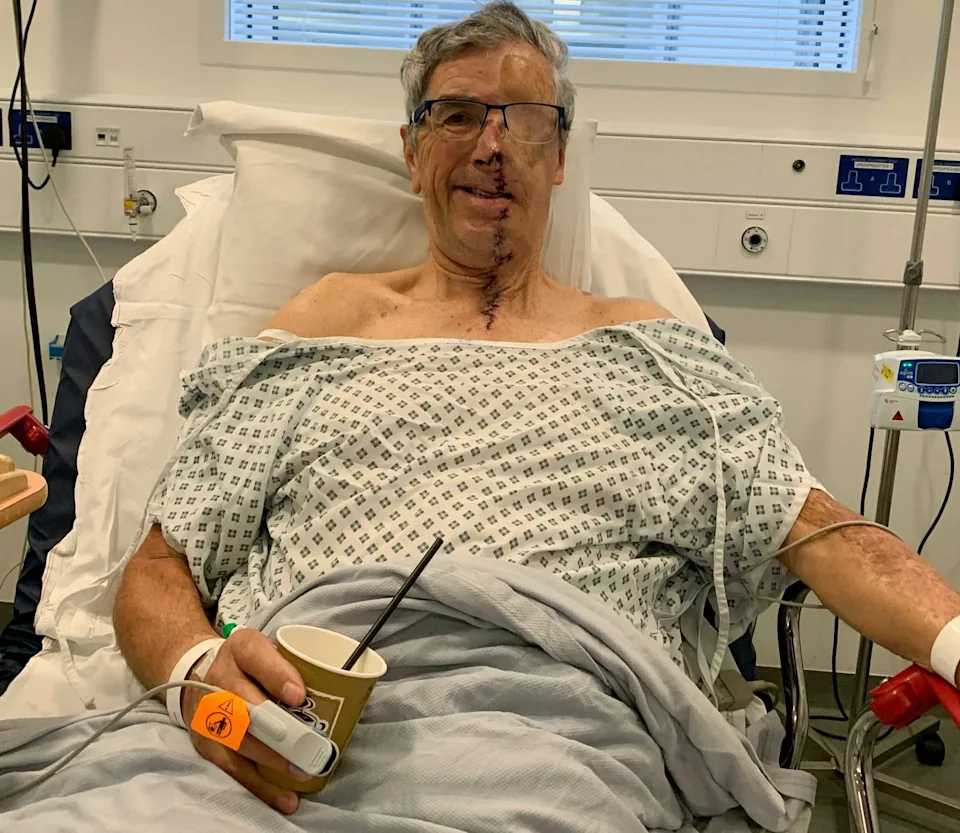 “The decision was then made to go for free flap, taking tissue with blood arteries and veins and plumbing it into my neck, the flap completely covering the side of my face.”