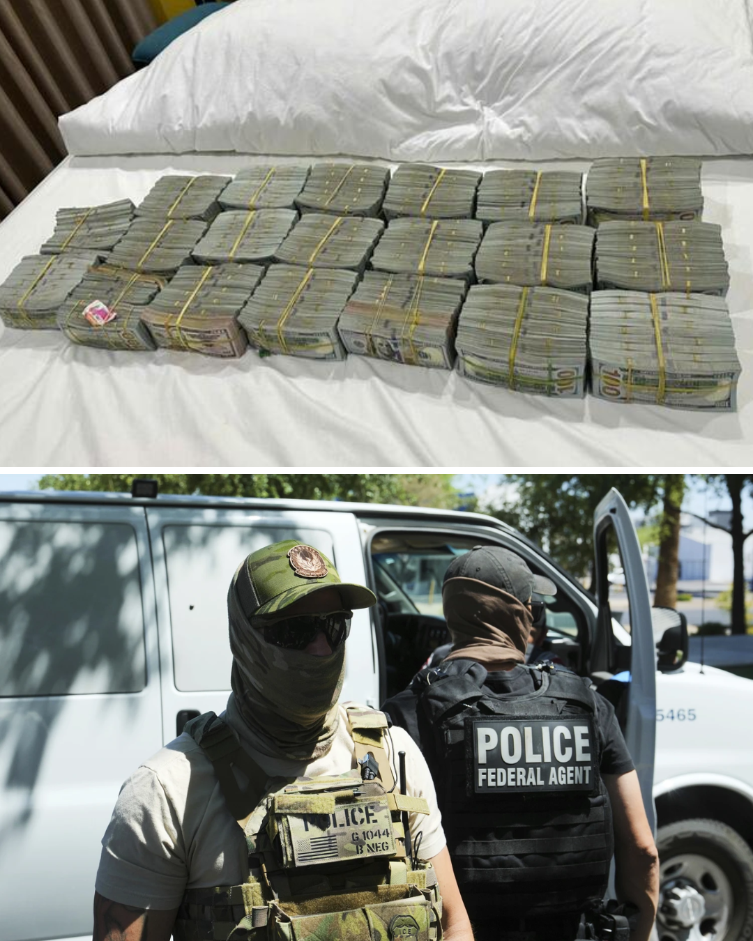 The article pairs that financial storyline with blockbuster seizure figures: agents “reportedly” recovered 472 kilograms of cocaine, 93 kilograms of methamphetamine, and 1.6 million fentanyl pills, amounts that the piece argues are consistent with a regional supply chain rather than a localized trafficking cell. It also describes a construction office where $1.2 million in vacuum-sealed cash was allegedly concealed inside drywall—packaged to resist moisture and hidden in a way meant to blend seamlessly into the building structure.