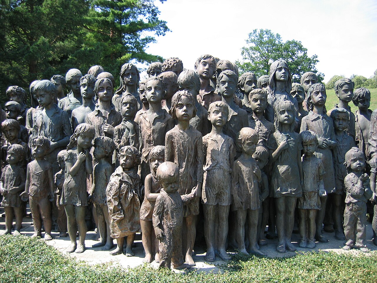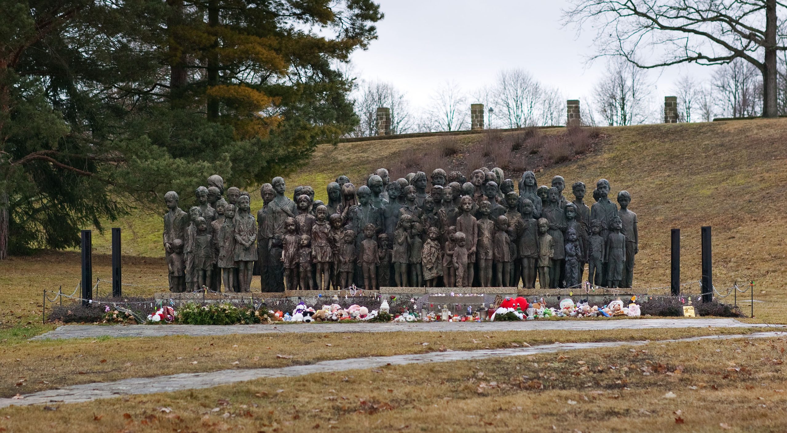 Although the original village was destroyed, Lidice was rebuilt nearby after the war. Today, the site of the old village stands as a memorial landscape. One of its most powerful features is the bronze sculpture group depicting 82 children — each figure representing a life lost. The memorial does not rely on dramatic symbolism; instead, it presents stillness. The children stand quietly, facing forward, inviting reflection rather than spectacle.