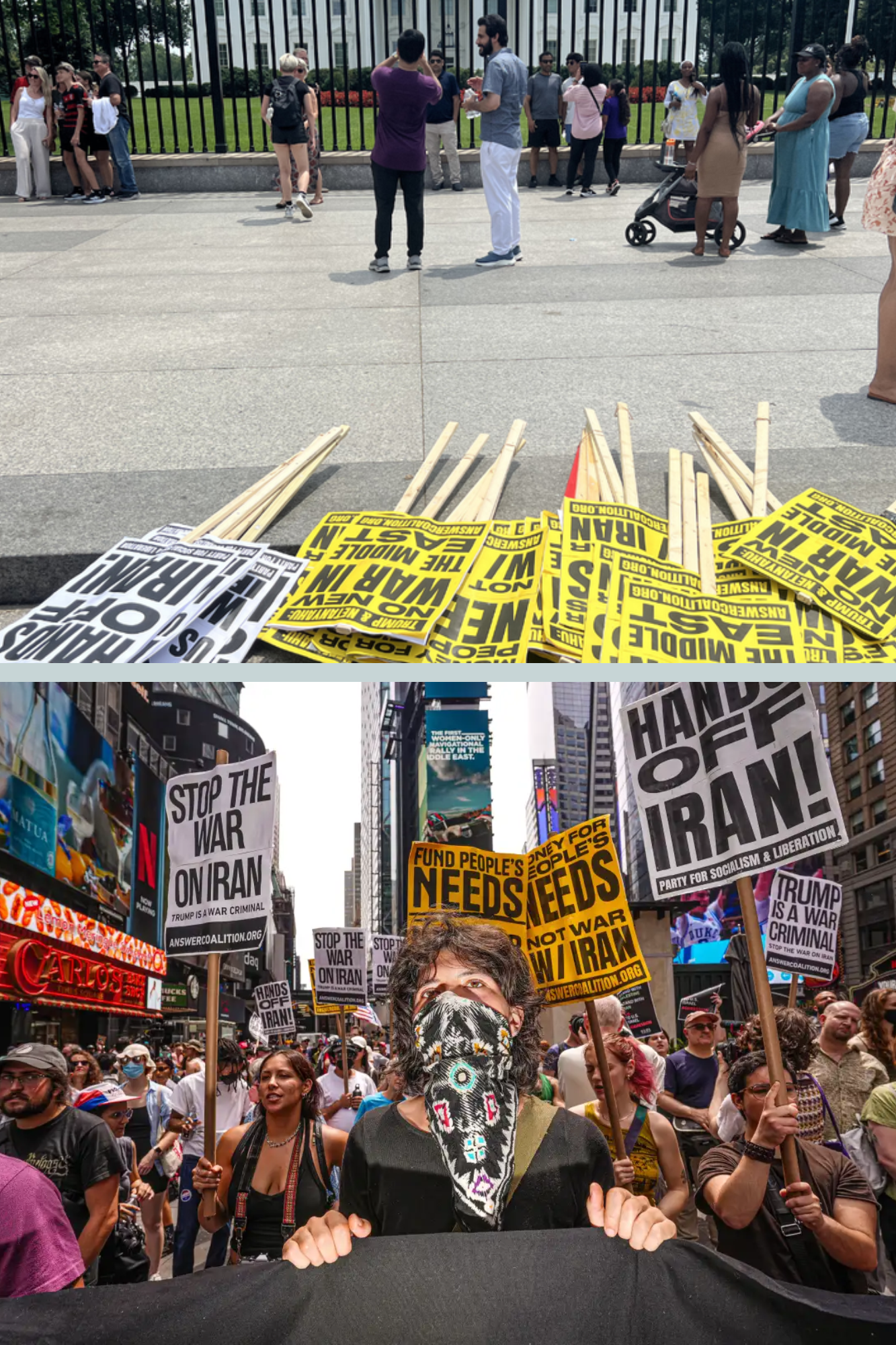 The demonstrations highlight growing domestic divisions in the United States as global tensions rise following the attacks on Iran.