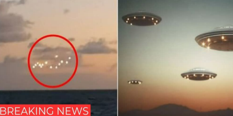 A video claiming to depict a “real UFO sighting” off the coast of North Carolina has sparked intense debate about the origin of the several lights shown floating together over the water in the clip.