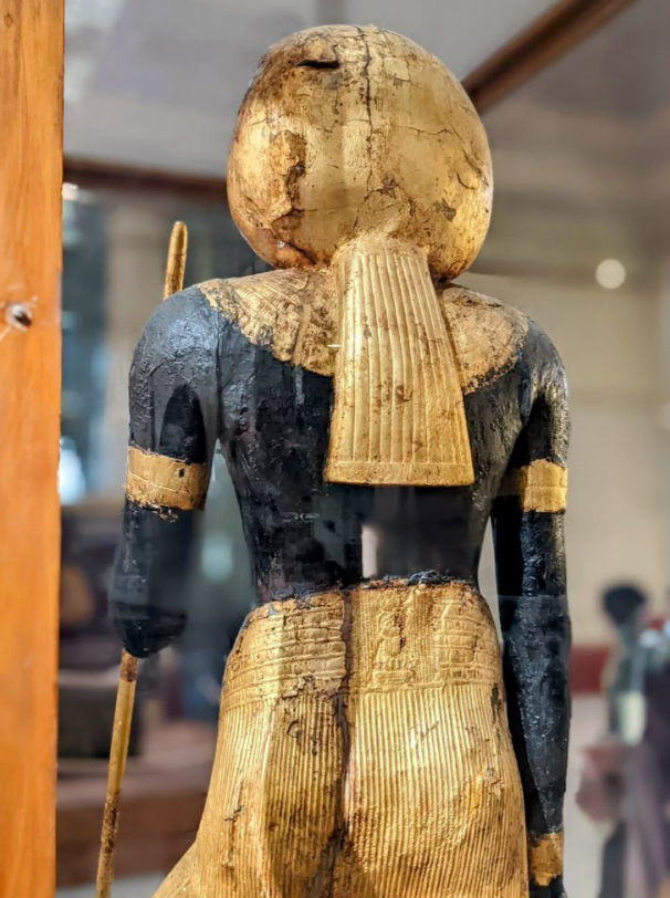 The statues’ rigid stance — one foot forward, arms held close, holding symbolic staffs — reflects established royal artistic conventions. Their form echoes stylistic developments of the late 18th Dynasty, including influences from the Amarna period. However, art historians note that stylistic precision does not imply mechanical fabrication. Skilled artisans of the time were capable of producing highly symmetrical and refined works using traditional carving and gilding techniques.