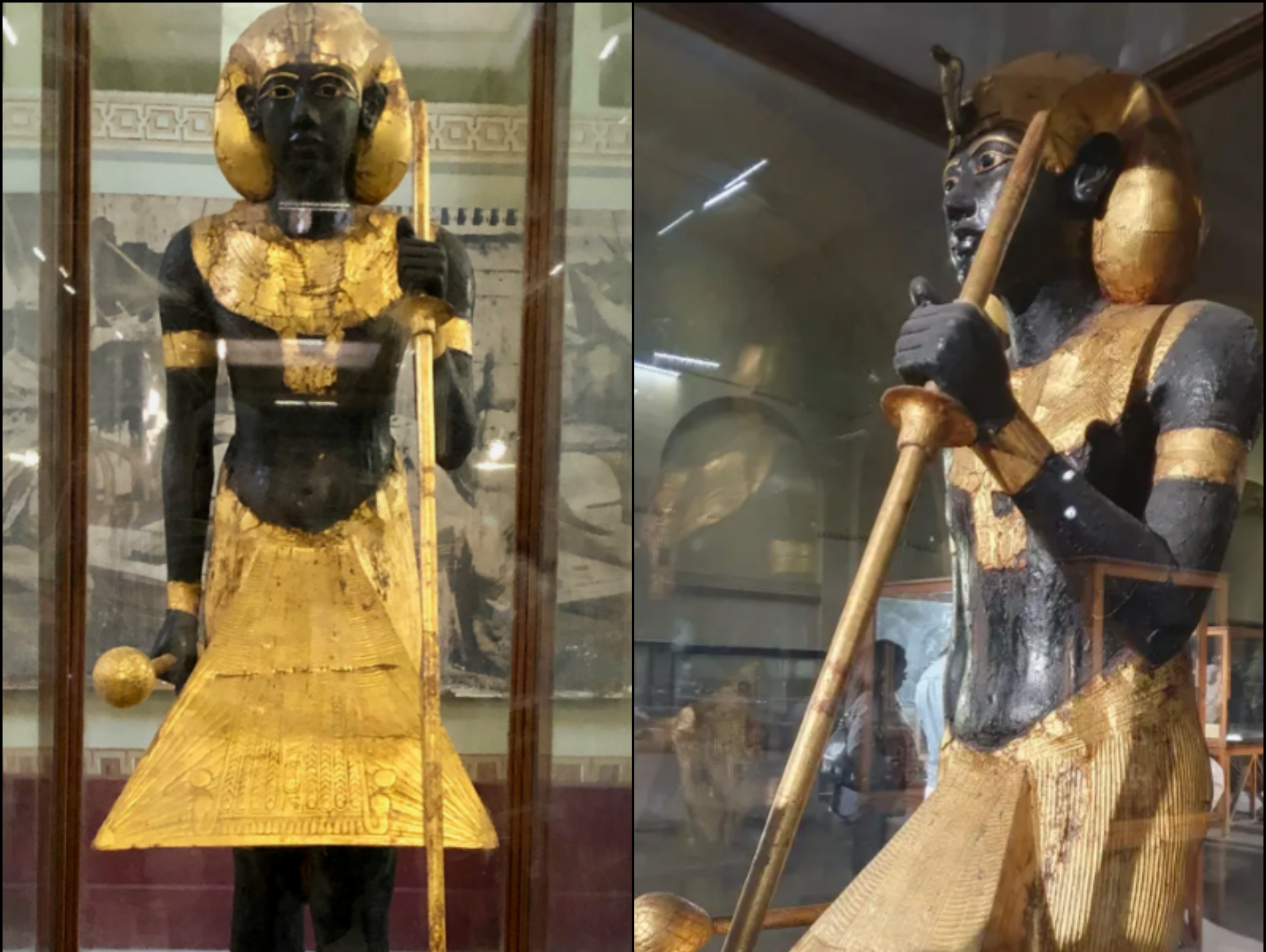 Mainstream Egyptology provides a far more grounded explanation. The statues are primarily constructed from wood, coated with black resin, and adorned with gold leaf. According to museum conservation reports, the black coloration is consistent with symbolic traditions of the 18th Dynasty. In ancient Egyptian belief, black was associated with fertility, rebirth, and the rich silt of the Nile River — themes closely tied to the afterlife.