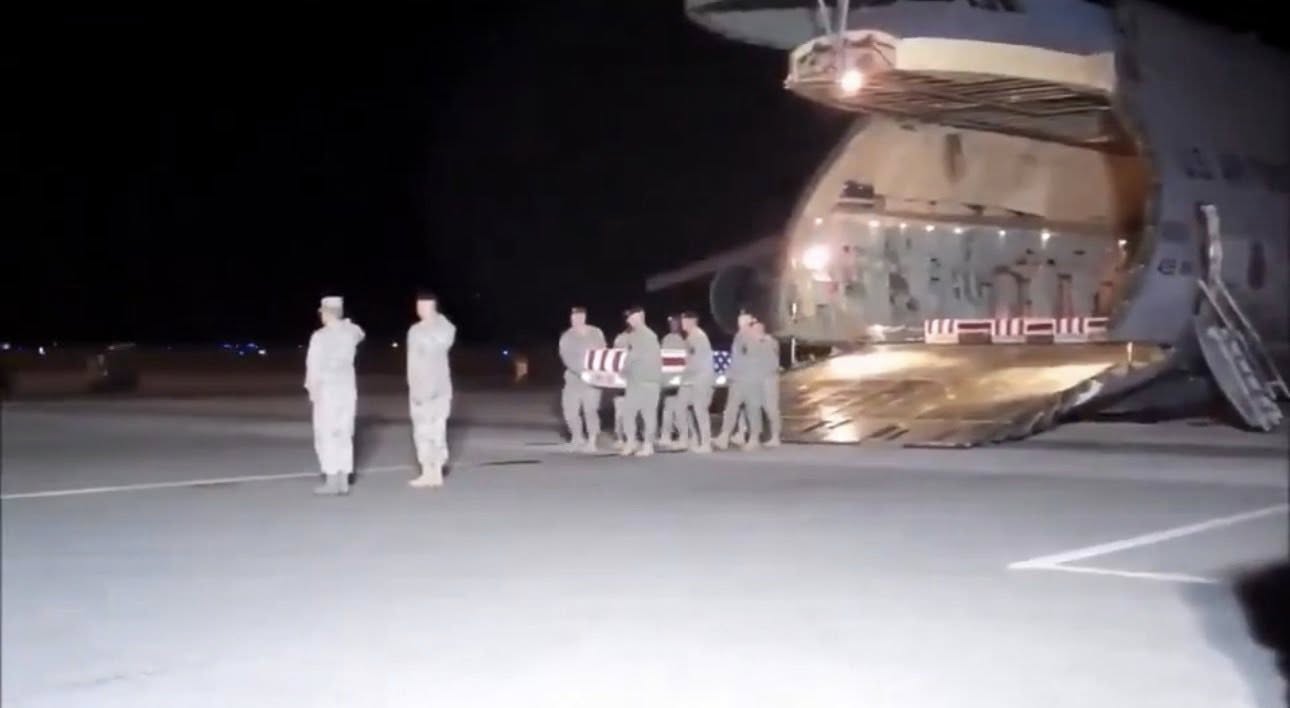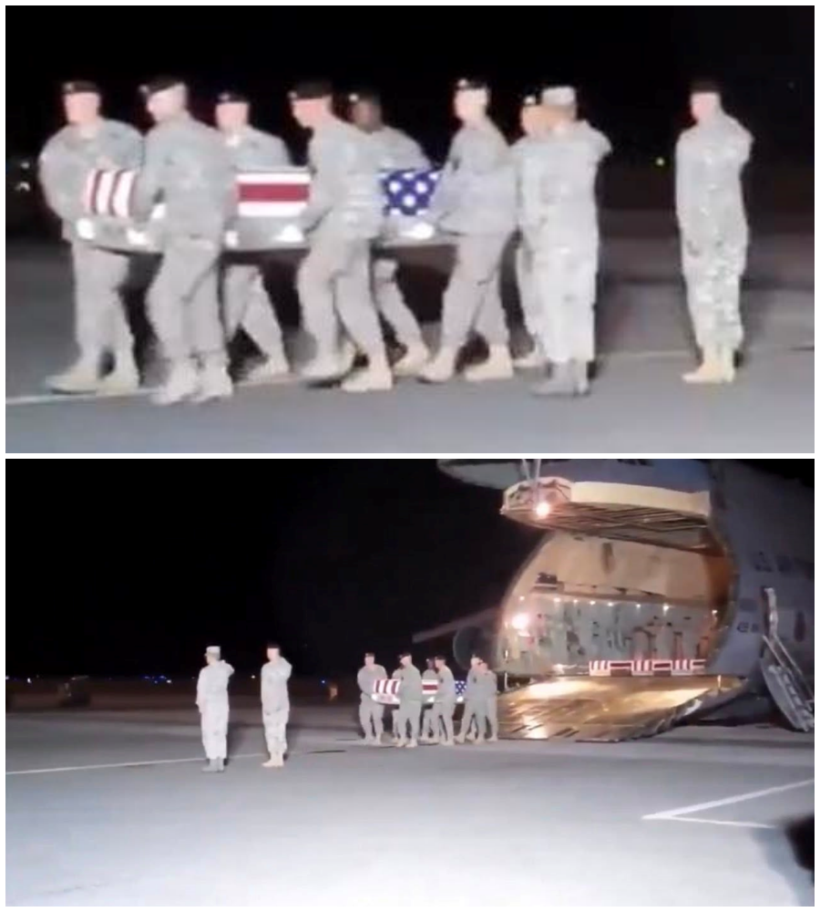 There were no speeches. No applause. Only the measured, deliberate steps of an honor guard as they carried flag-draped coffins across the tarmac. Each movement precise. Each pause heavy with meaning. 🎖️🖤
