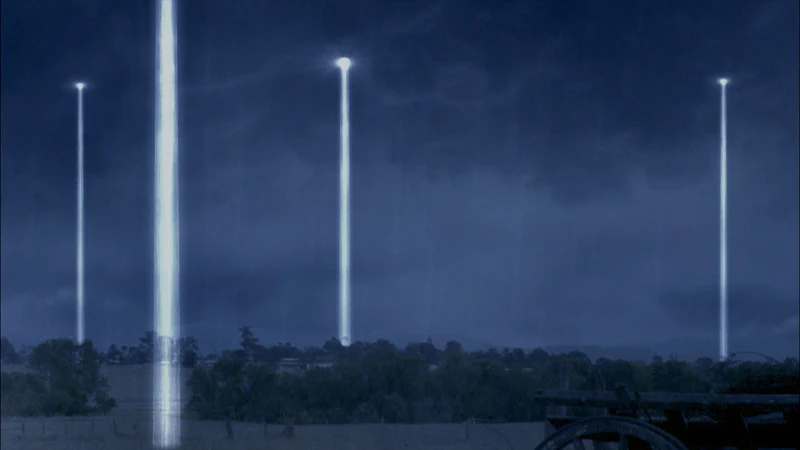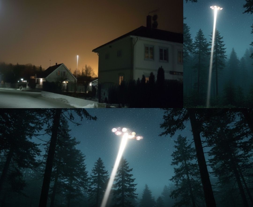 In another dramatic account, witnesses described a brilliant column of light descending from the evening sky, illuminating rooftops before vanishing without a trace.