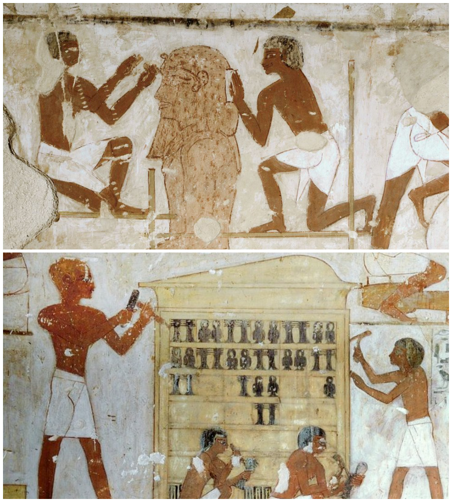 Scenes like this reveal a vital truth about ancient Egypt: its monuments were not created by abstraction, but by organized workshops of highly trained artisans. The depiction in Rekhmire’s tomb honors not only royal authority, but also the administrative order that made such projects possible. As vizier, Rekhmire oversaw many aspects of state labor and production; including such imagery in his tomb celebrated his role in maintaining maat — cosmic balance and societal harmony.