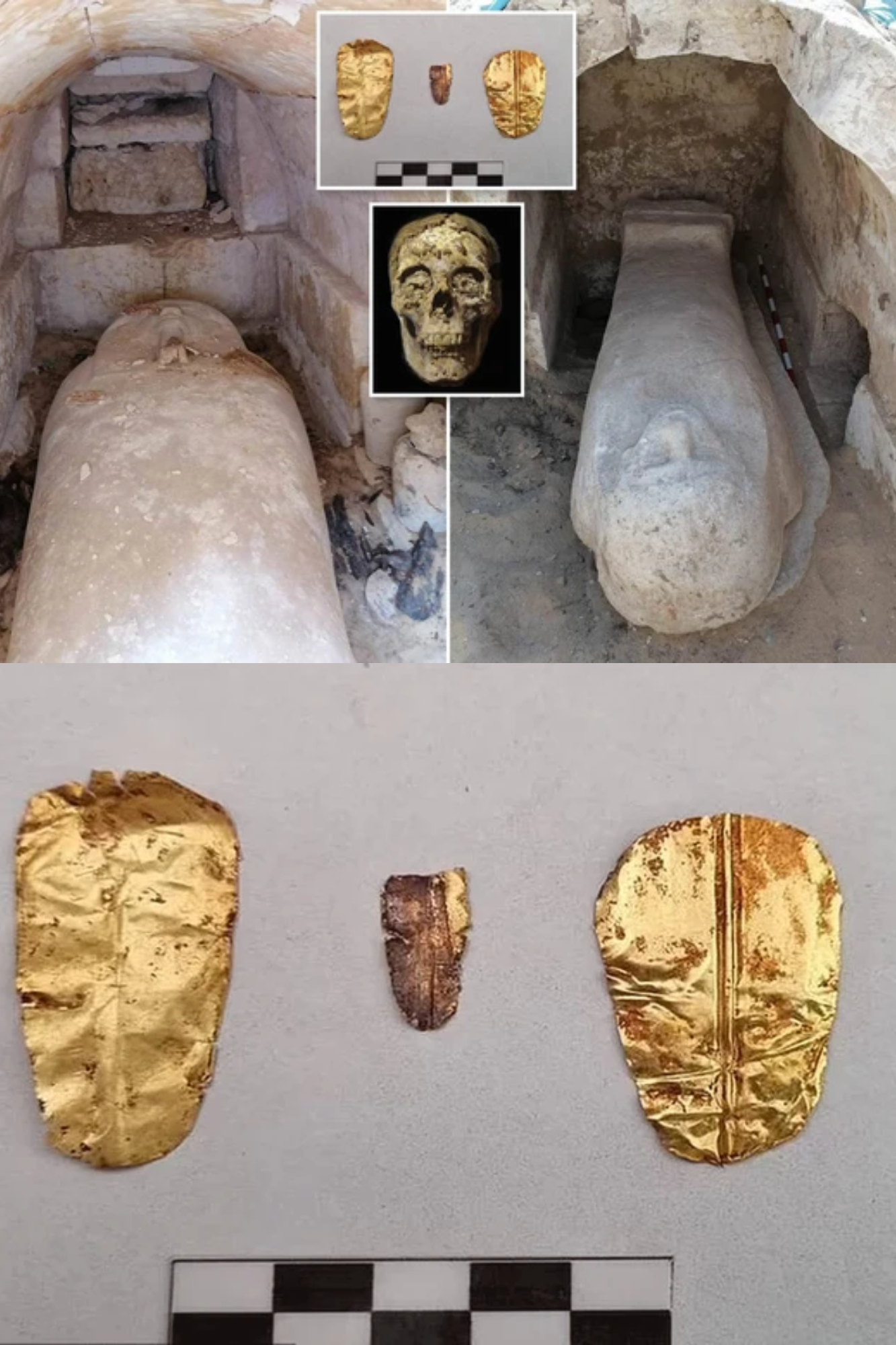 Archaeologists have discovered two ancient Egyptian tombs containing 2,500-year-old mummies with golden tongues, a rare burial practice believed to help the dead speak in the afterlife.