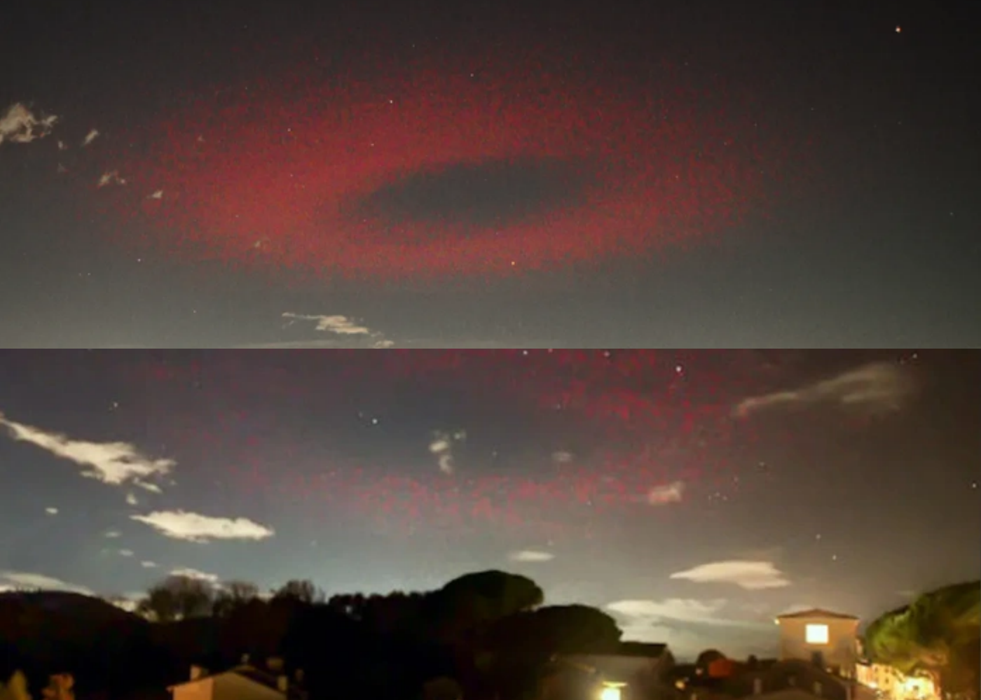 Nature photographer Valter Binotto captured the eerie phenomenon in a dramatic photograph showing a circular crimson halo lighting the night sky. The same type of glow had reportedly appeared more than two years earlier, leaving locals both fascinated and uneasy.