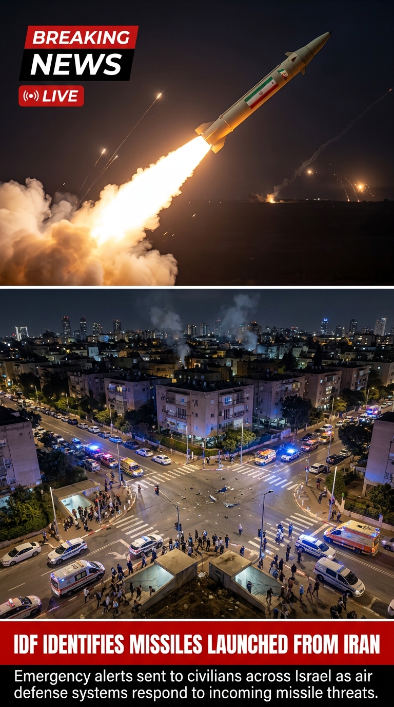 IDF identifies missiles launched from Iran amid emergency alerts to civilians