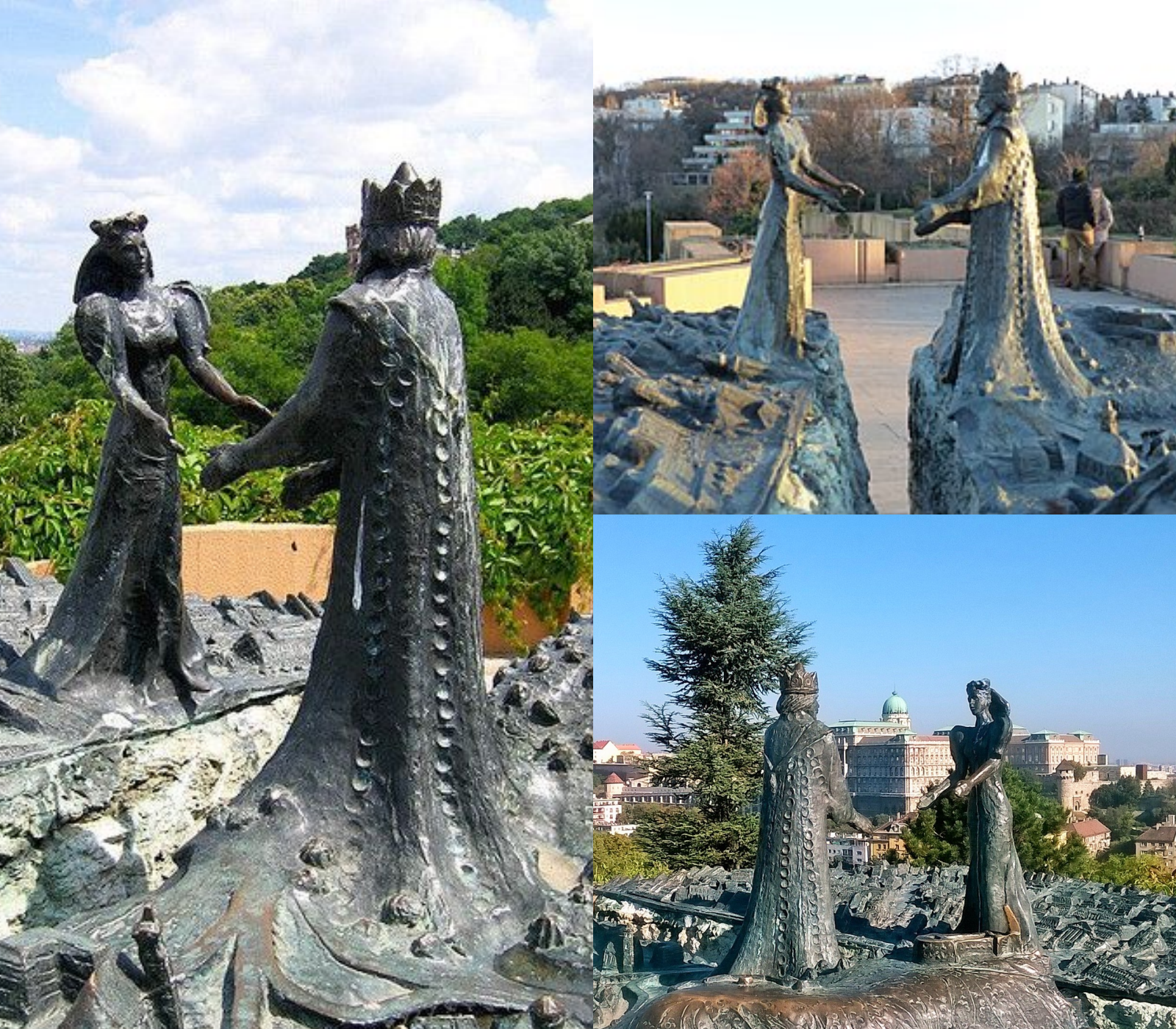 In Budapest, a bronze and stone sculpture symbolizes the historic union of two once-separate cities: Buda and Pest.