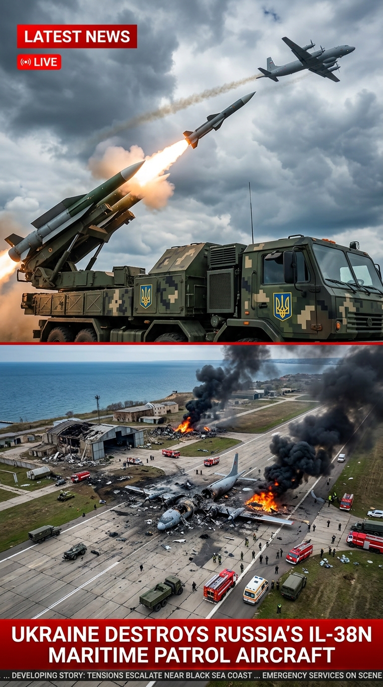 Ukraine has reportedly destroyed or severely damaged a Russian Ilyushin Il-38N maritime patrol aircraft, a rare surveillance platform used for anti-submarine warfare and maritime reconnaissance. According to Ukrainian officials and defense reports, the aircraft was targeted in a drone strike at Yeysk airbase in southern Russia, marking another example of how unmanned systems are reshaping the battlefield in the ongoing Russia-Ukraine war.
