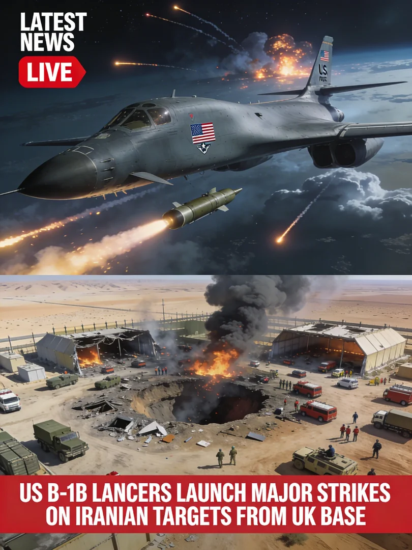 U.S. Air Force B-1B Lancer bombers launched a series of powerful airstrikes against Iranian military installations after deploying to RAF Fairford in the United Kingdom, marking a significant expansion of the ongoing air campaign known as Operation Epic Fury. The long-range bombers departed the British base overnight and conducted coordinated precision attacks on strategic targets deep inside Iranian territory.