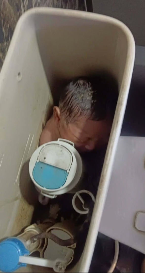 After lifting the toilet lid, she found the baby girl stuffed in the cistern, which was half-filled with water.