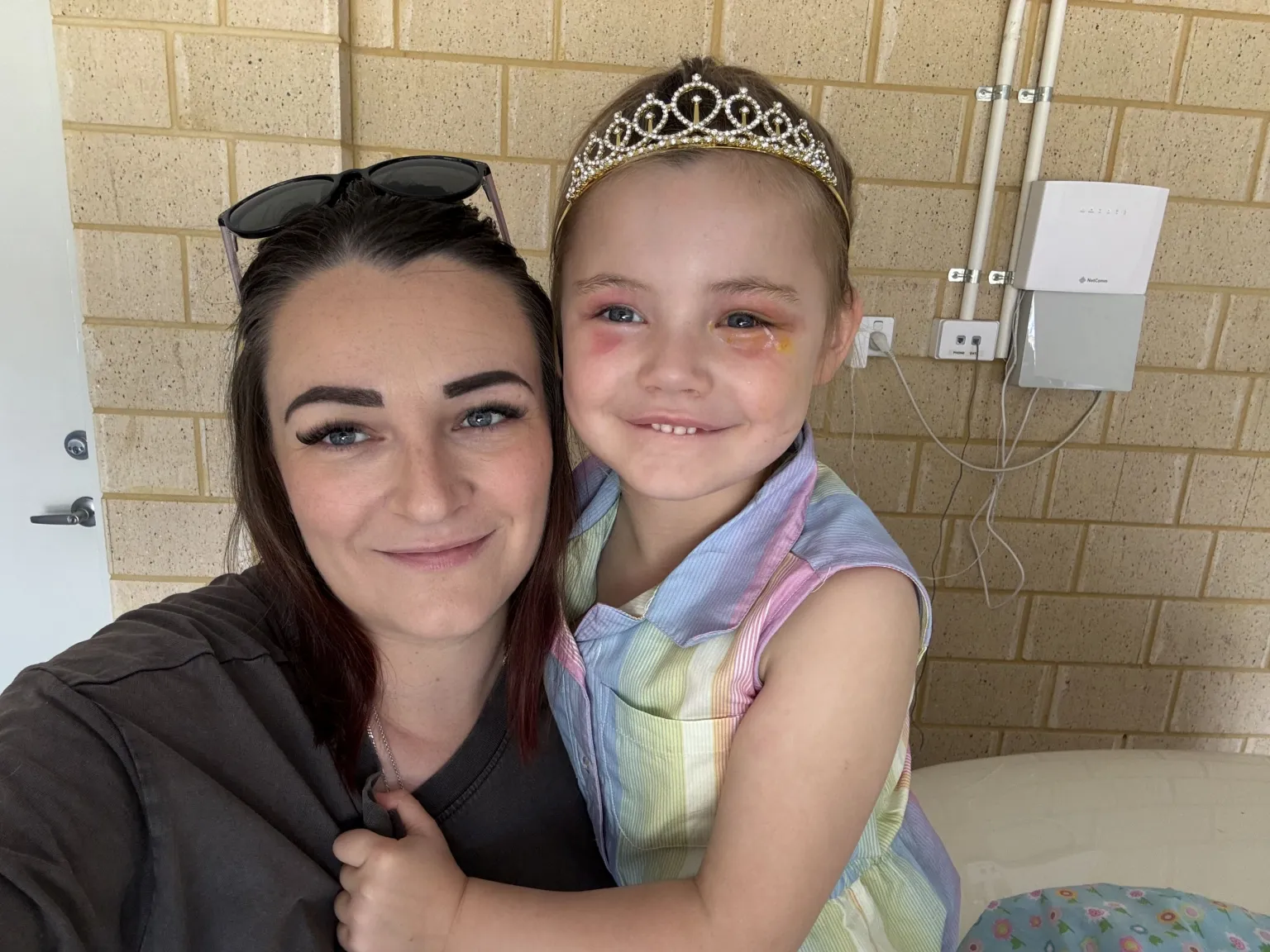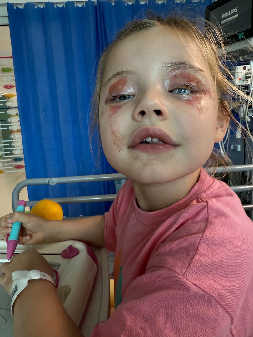 While in hospital, Luca received three medical procedures after doctors identified a problem with her left eye, including an amniotic membrane treatment where a thin layer of healing tissue is placed on the eye to support recovery.