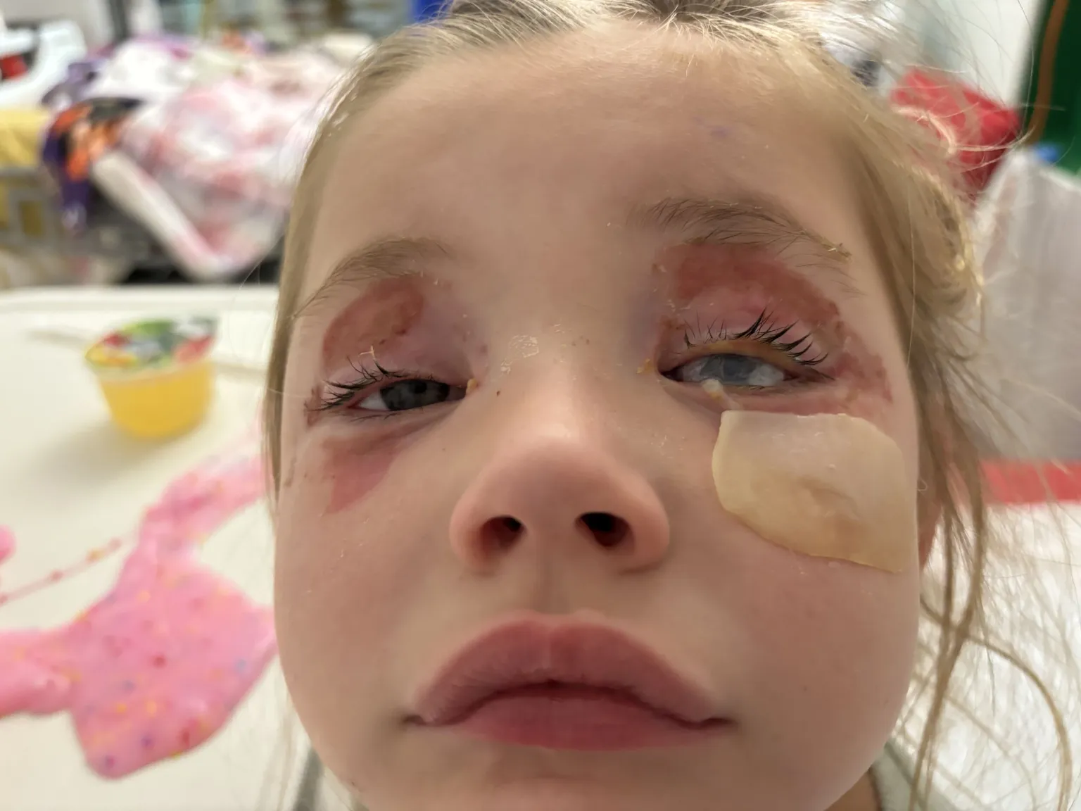 Photos taken during her recovery showed Luca’s eyes red and swollen, with irritation appearing a few days after contact with the detergent.