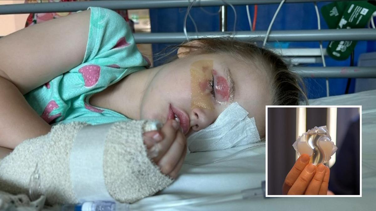 A mum has issued an urgent warning to other parents after her little girl experienced temporary vision problems when she turned away for just a moment while doing laundry.