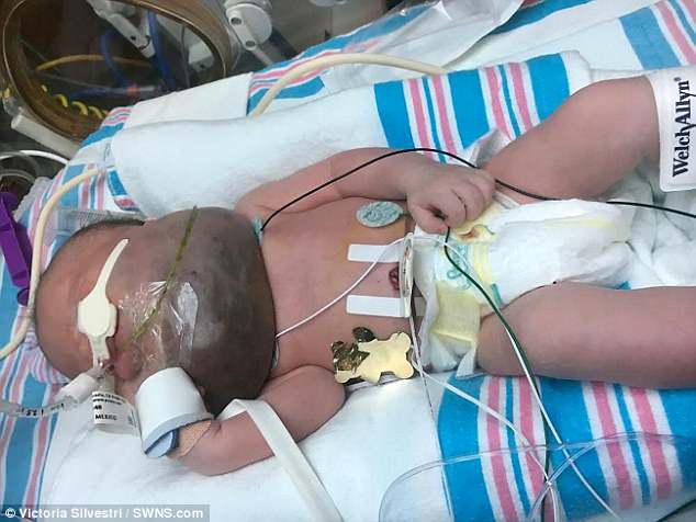 She said: ‘He’s been in the NICU since he was born and it hasn’t been easy.