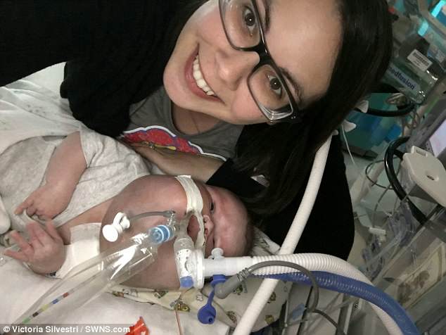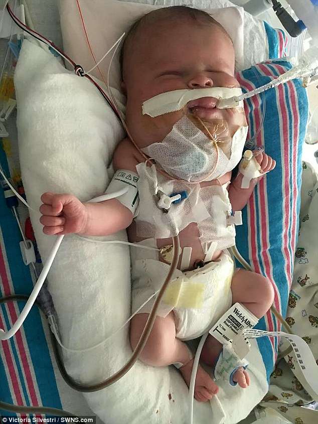 Ms Silvestri said: ‘Our main focus right now is getting his incision healed but hopefully he can be fitted with a trach which would maybe allow us to take him home for the first time.’