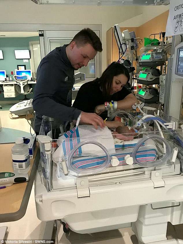 Ms Silvestri was scheduled for a Caesarean section on February 8 but went into labour early while her husband Joe Silvestri, 27, a college basketball coach, was at an away game.
