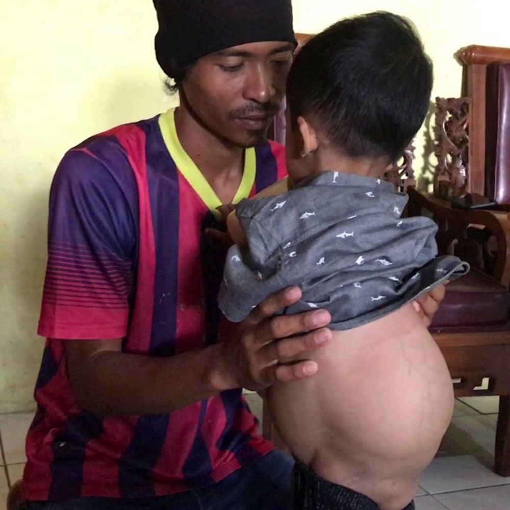 Isa’s health challenges began shortly after birth. His father remembers that the baby often cried, became weak, and sometimes developed high fevers. One day, he noticed a small lump on Isa’s back, about the size of a baseball. At first, he believed it might simply be an insect bite or a temporary swelling.