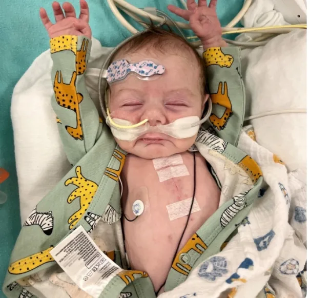 A newborn boy named Lucky is touching hearts after an extraordinary medical journey that began just days after he entered the world.
