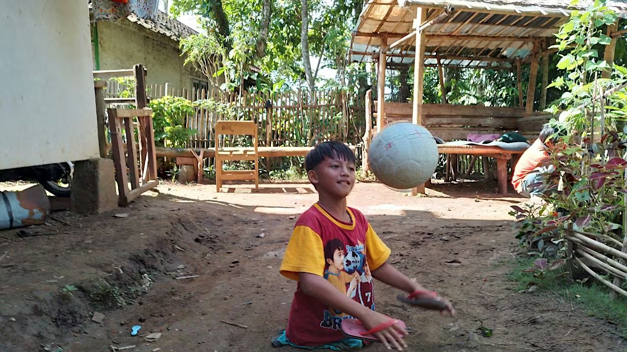 Neighbors often see Sahroni outside with other children, laughing and playing games. One of his favorite activities is soccer. While he cannot run across the field like the others, he still joins in the fun, cheering loudly, kicking the ball when he can, and sharing joyful moments with his friends.