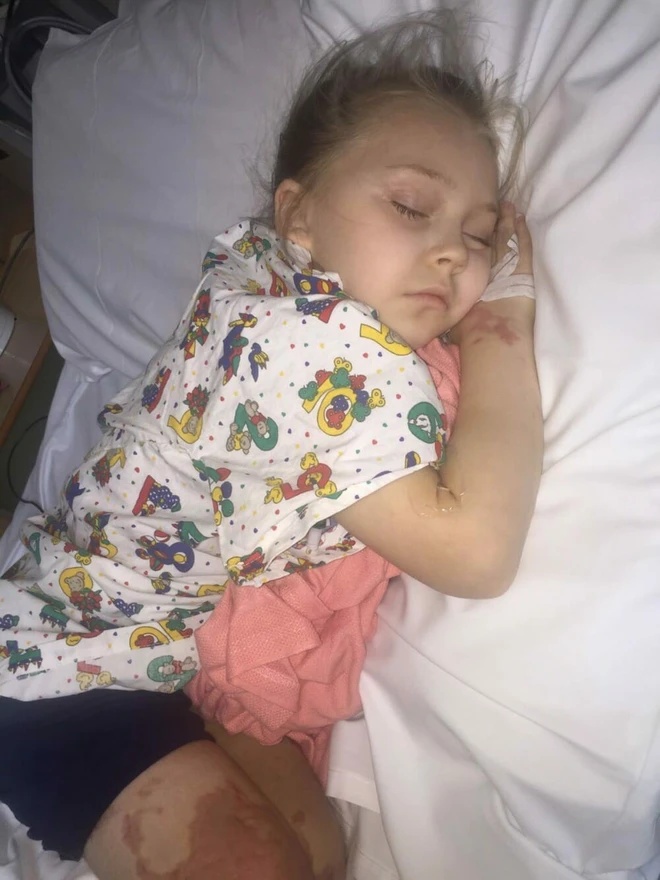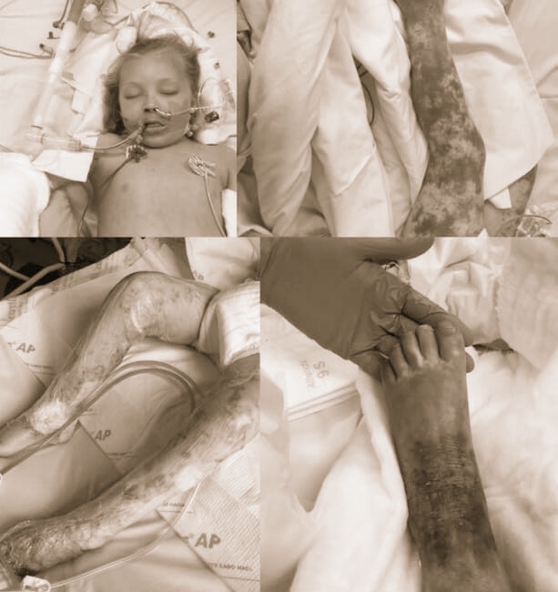 Both of her legs showed a severe rash, and she had medical tubes and equipment attached to her body – and doctors decided they would have to carry out a procedure on one of her feet to save her life.