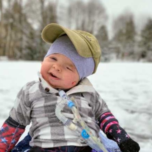 William has a feeding tube, a tracheostomy, and is on a ventilator. He has had multiple major surgeries, including one on his skull to make room for his brain to grow.