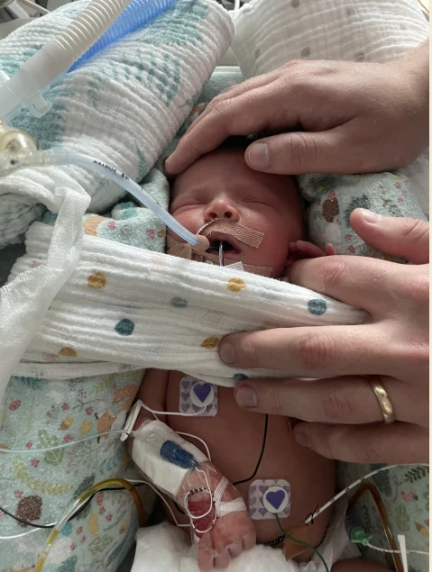 She was immediately placed on a ventilator and required urgent medical care. Her parents were unable to hold her right away, meeting their daughter for the first time hours after her birth — and only holding her for the first time two weeks later.