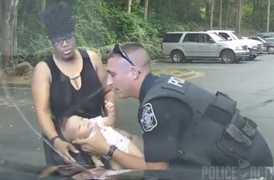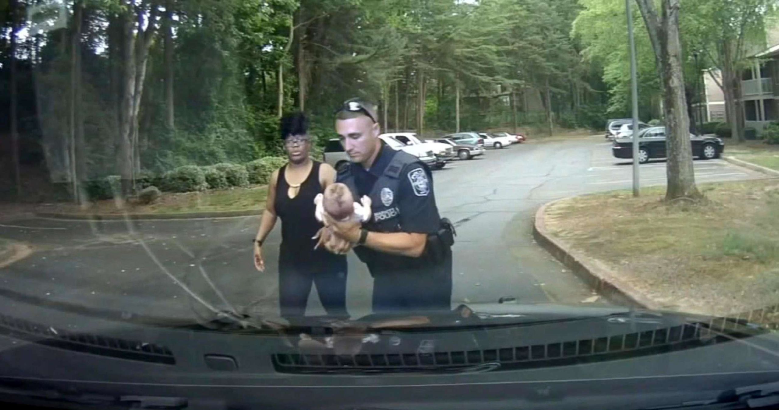 Officer St. Onge, a five-year veteran of the department, arrived at the scene to find a woman standing in the parking lot, holding the baby, police said.