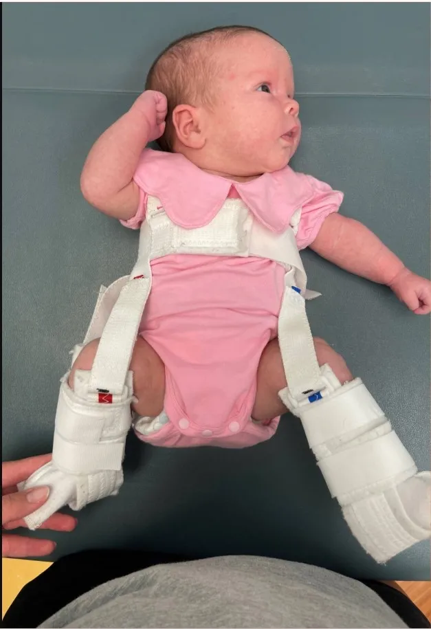 At four weeks old, her world became a harness. Day and night, her fragile body was held in place, with no rest, no freedom. Simple moments became heavy with worry. Every movement felt uncertain, every cry carried a weight her parents could barely hold.