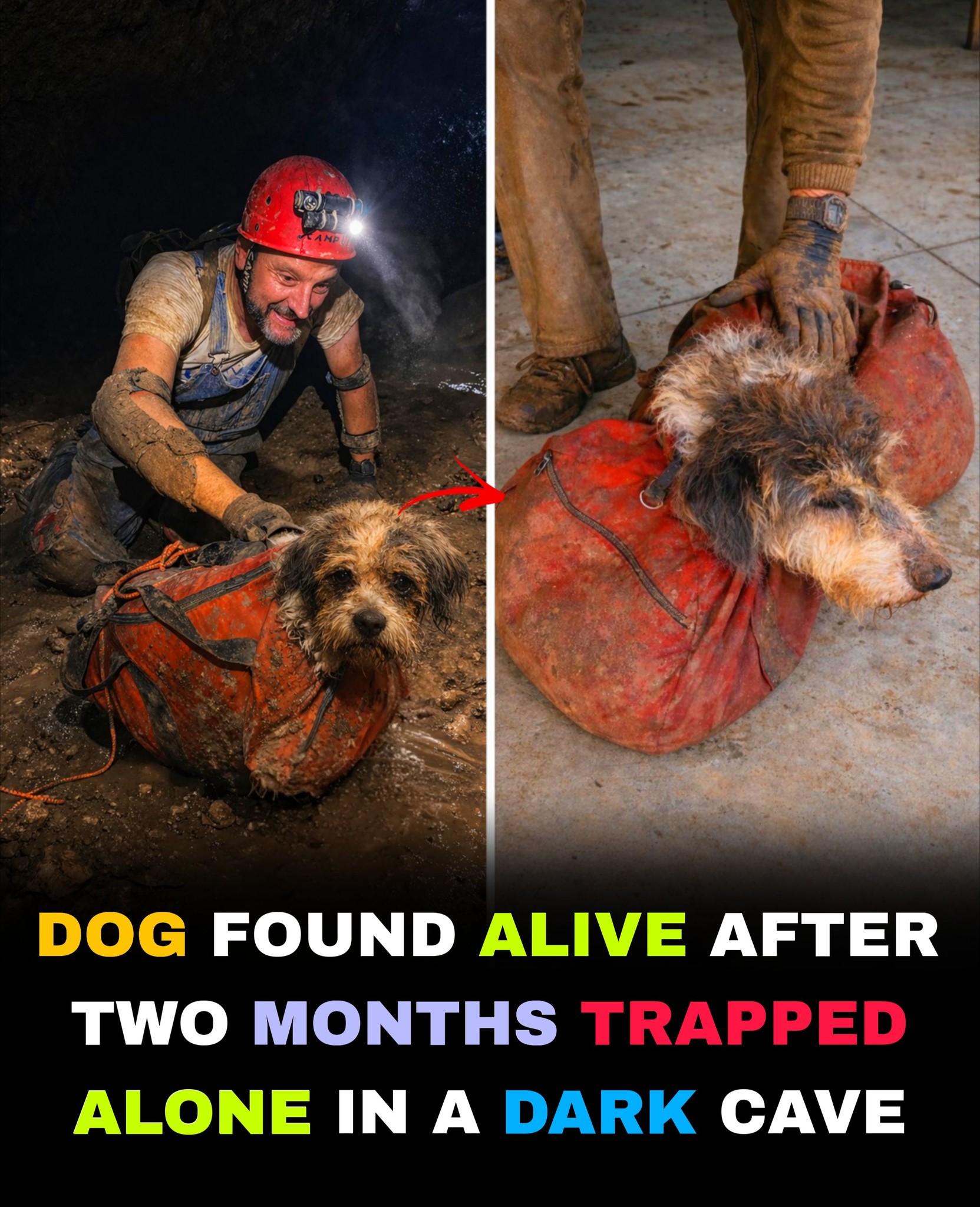 DOG FOUND ALIVE AFTER TWO MONTHS TRAPPED IN A CAVE
