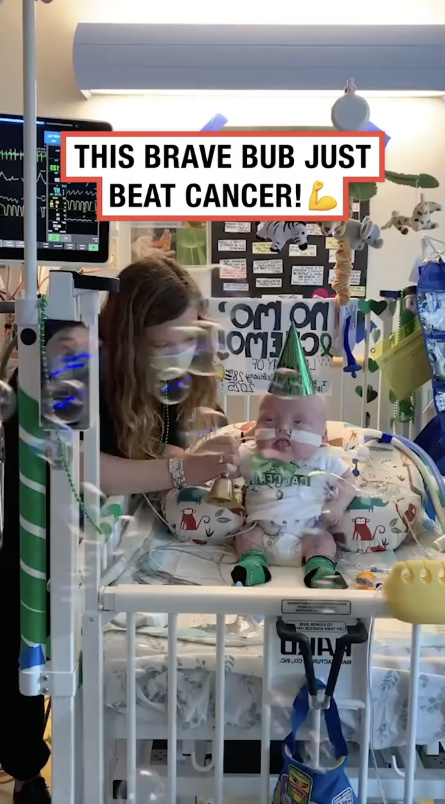 A tiny baby lies quietly in a hospital room surrounded by machines. The cold white lights make everything feel heavy and silent. Yet on the baby’s head sits a small party hat. As if someone is trying to hold onto a piece of joy. A battle has already begun before life could even start. The pain is far too big for someone so small. But the baby is still here, still breathing, still fighting. Sometimes miracles begin in the quietest moments.