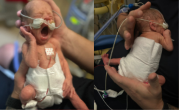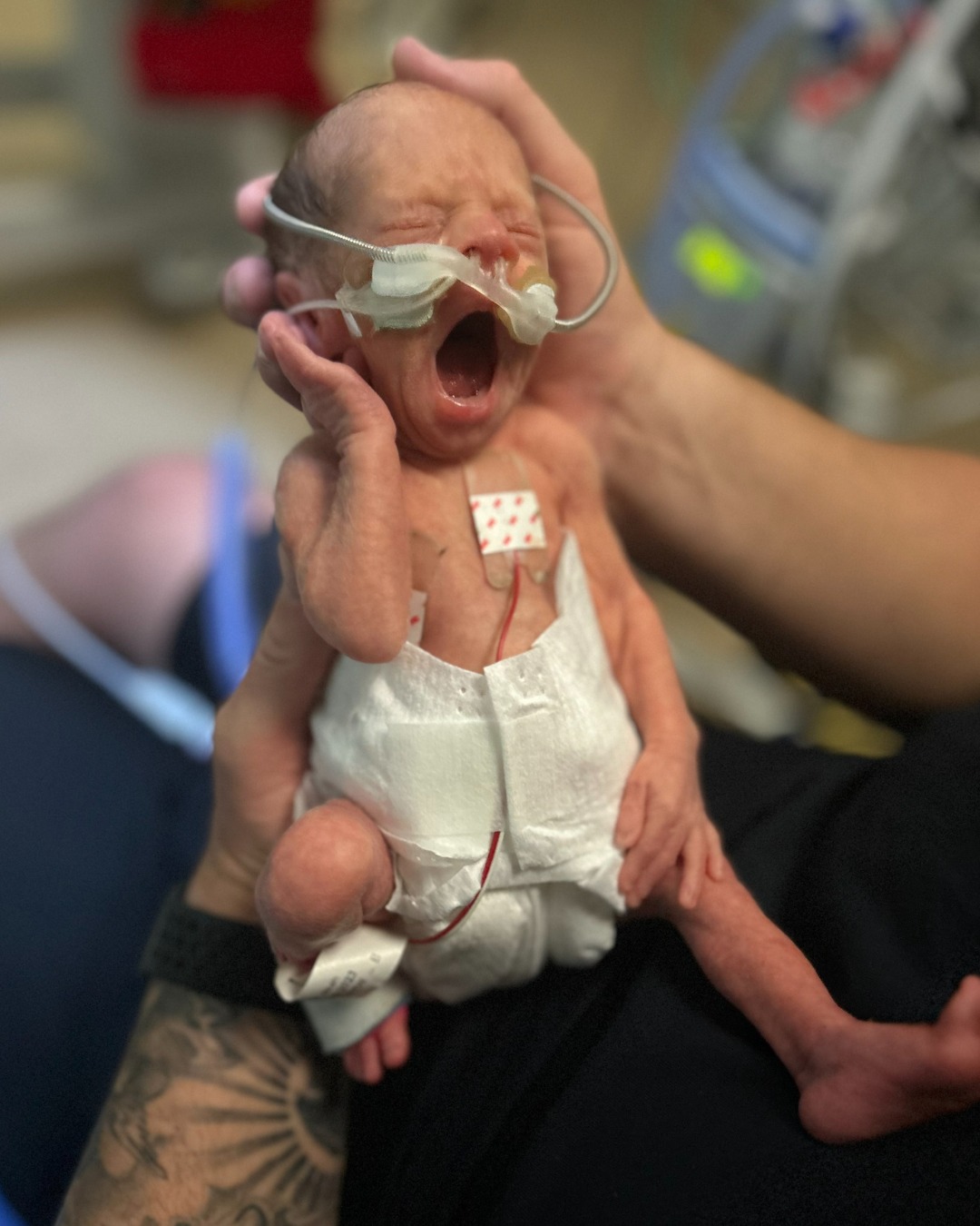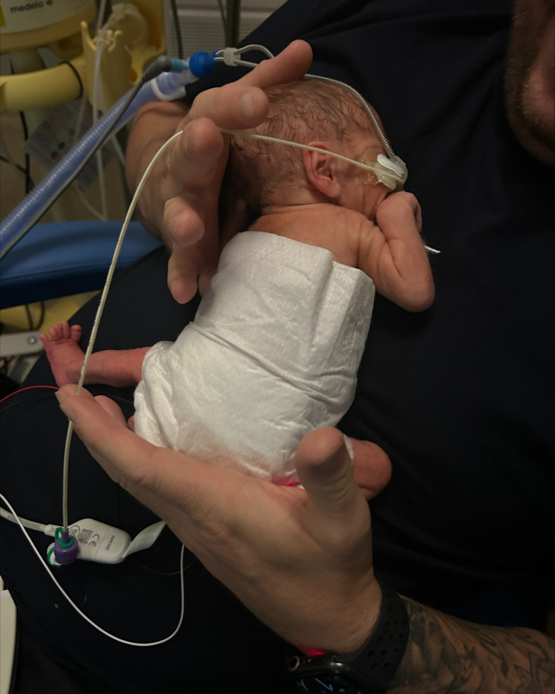 “By Saturday, they informed us that we were going to have to prepare for a caesarean birth immediately. At 10:51pm Noah was born at 29 weeks and two days, weighing a tiny 905 grams.”