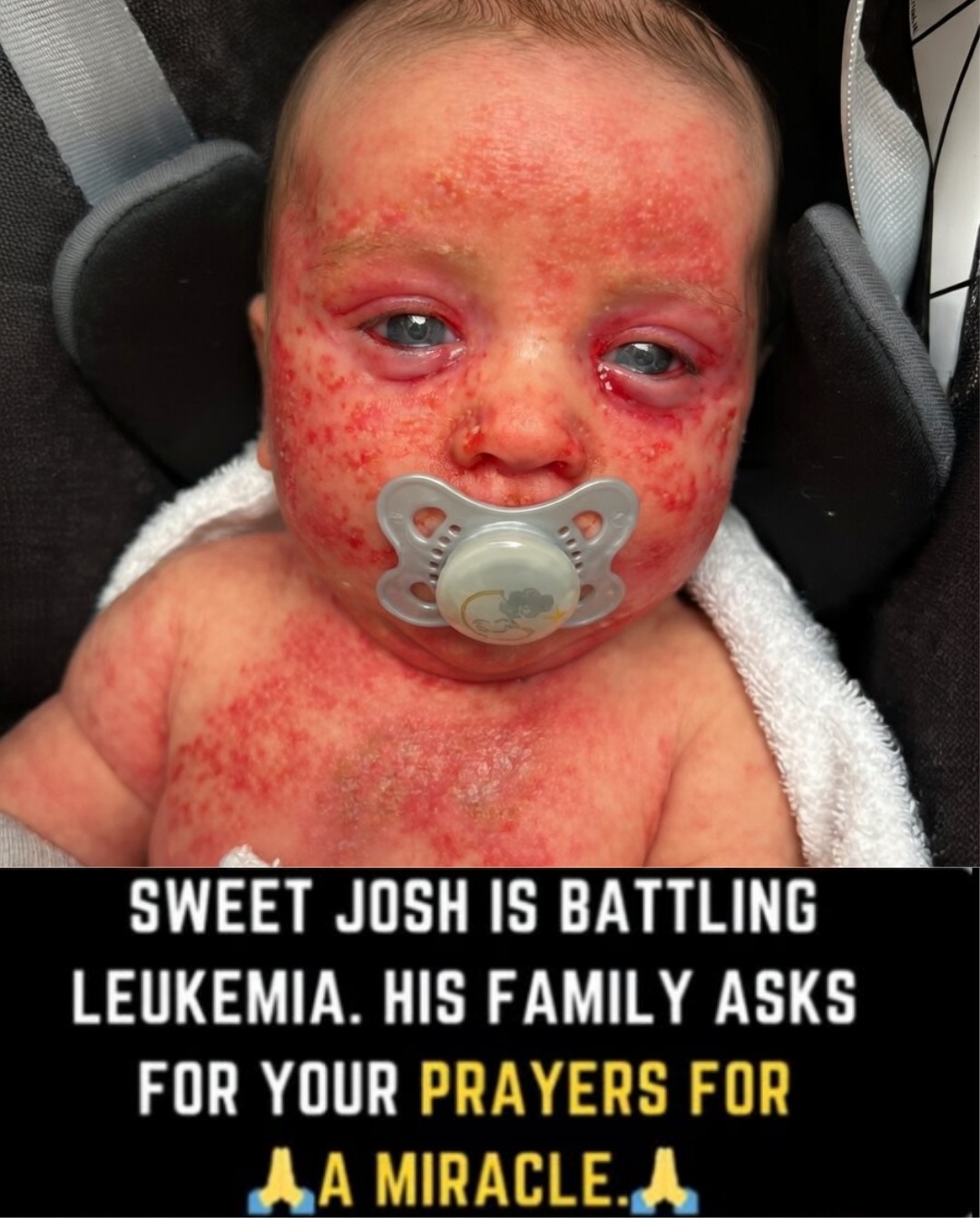 His skin burns with a pain he cannot explain, yet his eyes keep searching—quietly, desperately—for comfort. For warmth. For someone to hold him close and make the world feel safe again. Every tear that falls carries a weight far beyond his tiny frame, telling a story no child should ever have to live through.