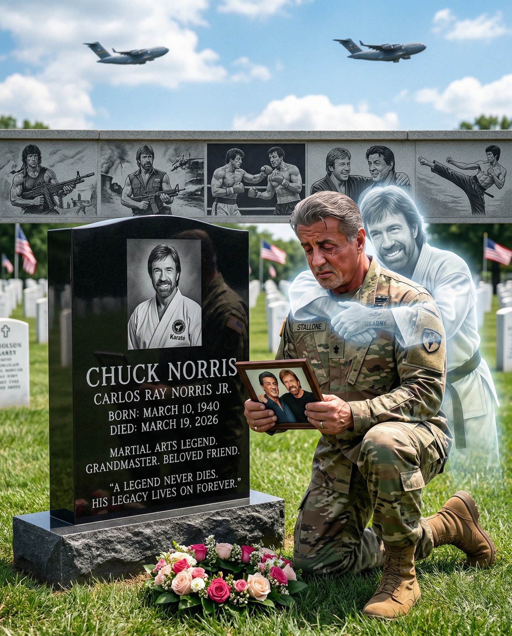 The gravestone itself bore not just a name, but a legacy. Above it were engraved scenes reminiscent of a life spent in motion—martial arts, combat, discipline. Chuck Norris had not simply acted in films; he had embodied a philosophy. His presence in movies like *The Delta Force* and *Missing in Action* made him a symbol of courage, while *Lone Wolf McQuade* showcased the lone warrior archetype that audiences would never forget. And perhaps most enduring of all was *Walker, Texas Ranger*, where he became more than a character—he became a moral compass, a figure of justice in an uncertain world.