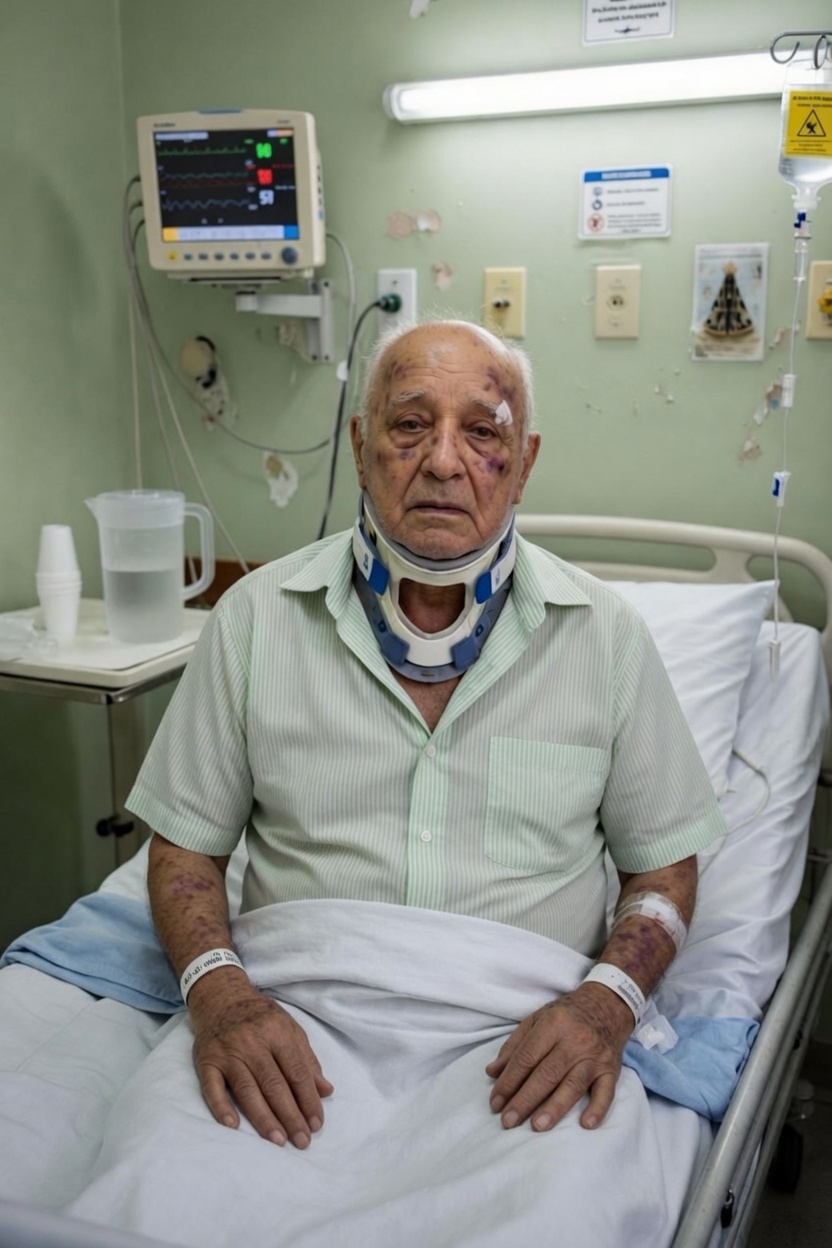Every mark on their body tells a story. Scars, bruises, and signs of medical care speak of a long and difficult road — one that has tested both strength and spirit. Around their neck, a cervical collar offers protection, yet serves as a constant reminder of how fragile life can feel in moments like this.