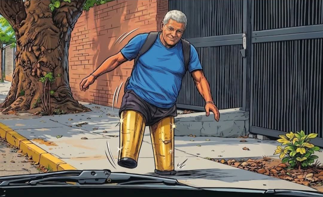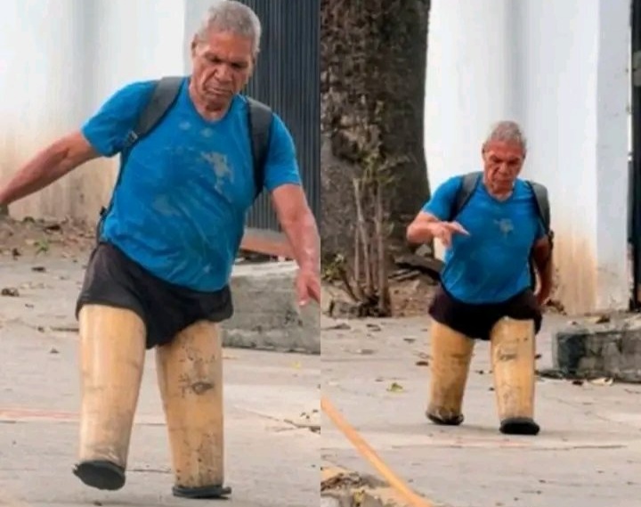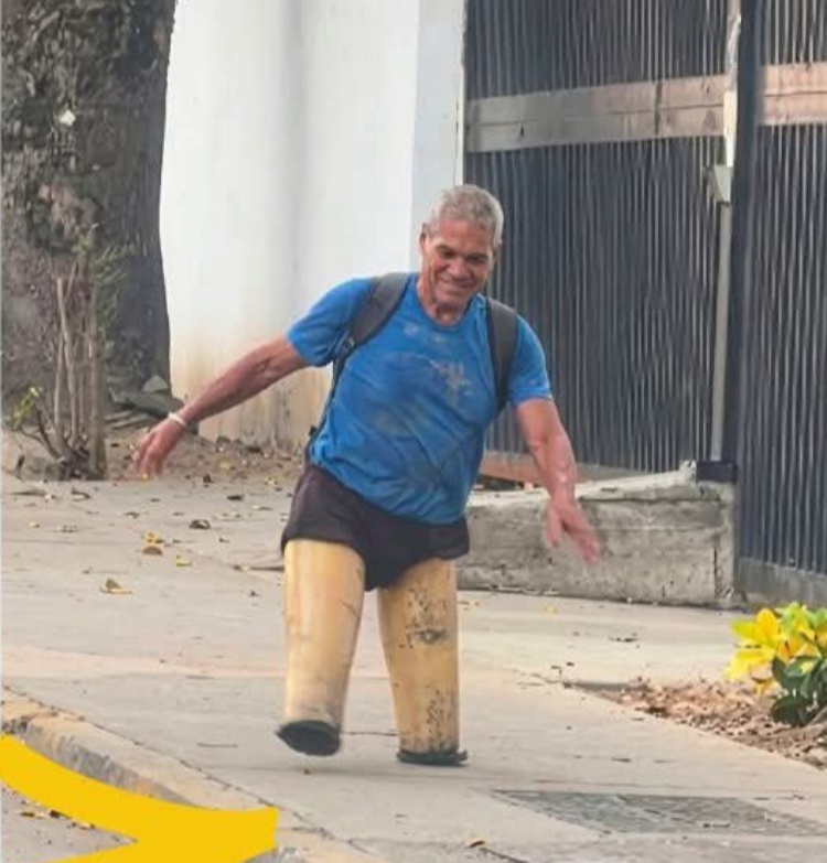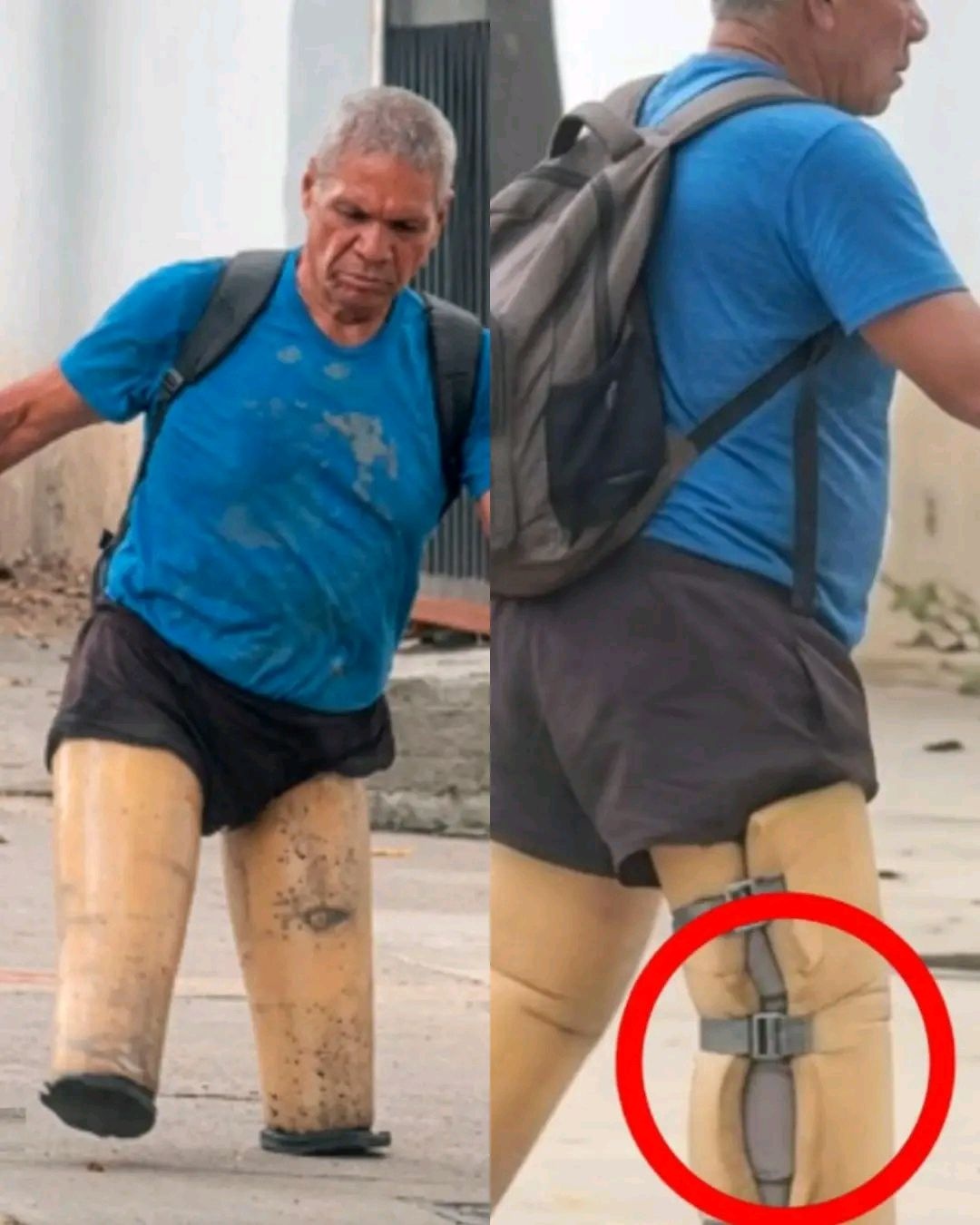 Supported by prosthetic limbs that are heavy, worn, and far from comfortable, Carlos walks mile after mile. Each step is slow, sometimes painful, but never uncertain. For him, walking is not just movement — it is a statement of courage.