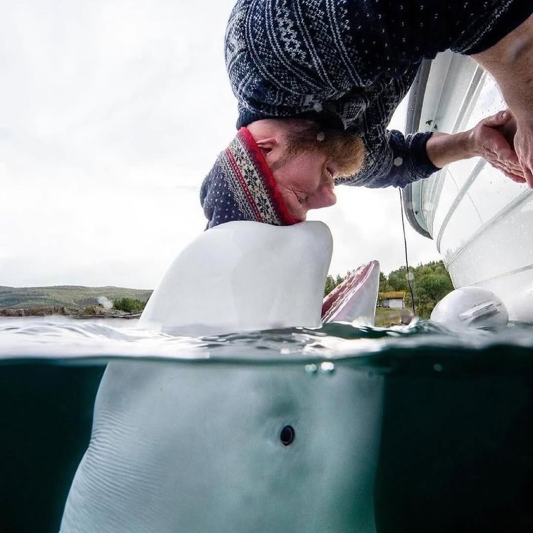 The moment Hvaldimir pressed his head against Joar’s chest is what scientists call interspecies social bonding. Beluga whales are known as the “canaries of the sea” because of their complex vocalizations and high intelligence. They are deeply social beings. For Hvaldimir, that touch wasn’t just a “thank you”—it was a search for the social connection he had been missing since being lost or abandoned.